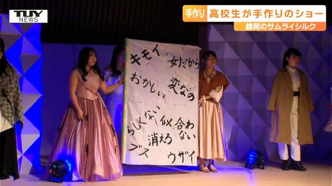 鶴岡市の特産である鶴岡シルクを使った高校生による手作りのファッションショーがきのう鶴岡市で開かれました。