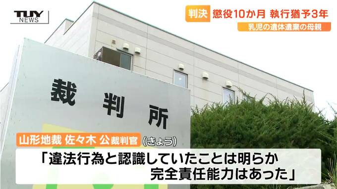 きょうの判決公判で山形地裁の佐々木公裁判官は、「出産した赤ちゃんに『ごめんね』と謝罪していることや、自身の判断で犯行の発覚を防ぐ行動をしていて、違法行為と認識していたことは明らか。完全責任能力はあった」と述べました。