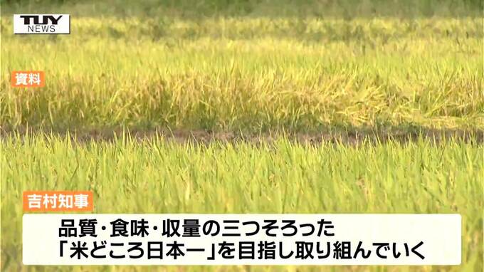 吉村知事は「生産者の皆様の努力の賜物。今後も気候変動に負けない米づくりを生産者、関係機関と連携して進め、品質、食味、収量の三つ揃った「米どころ日本一」を目指し取り組んでいく」とコメントしています。
