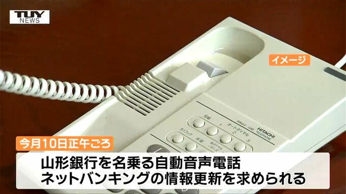 山形鉄道によりますと今月10日の正午ごろ、山形銀行を名乗る自動音声電話が入り、ネットバンキングの情報更新を求められました。