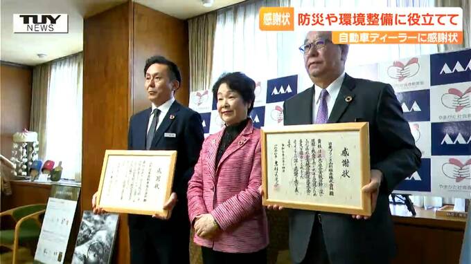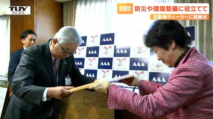 防災や環境整備に役立ててもらおうと県に寄付金を贈った自動車ディーラーに、感謝状が贈られました。