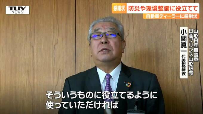 山形日産自動車 日産プリンス山形販売 小関眞一 代表取締役「災害や再エネがものすごくクローズアップされてきていますので、そういうふうな開発や環境整備することとか、あとは防災ですね。非常に危険なことがたくさん起きる世の中になっていますので、そういうものに役立てるように使っていただければ」