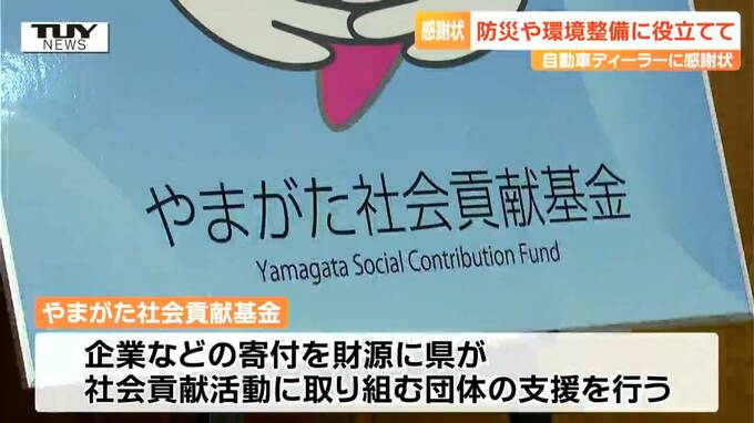 「やまがた社会貢献基金」は企業などの寄付を財源に、県が、社会貢献活動に取り組む団体の支援を行うもので、2社は10年以上前からこの基金に寄付を行っています。