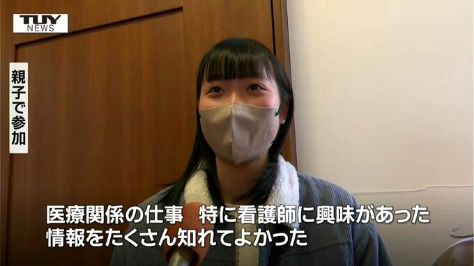親子で参加「もともと医療関係の仕事に興味があって、特に看護師にとても興味があったので、情報をたくさん知れて良かったです」