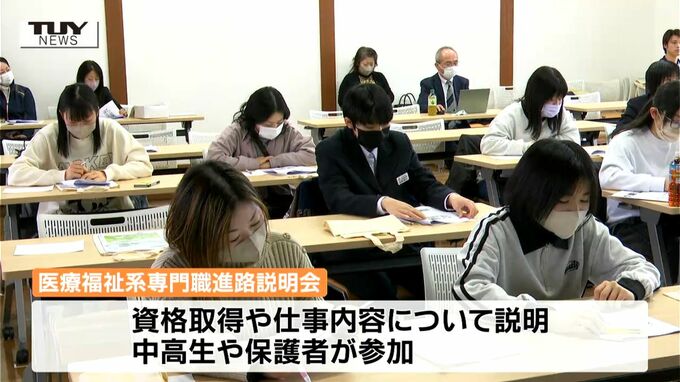 医療や福祉に特化したこの進路説明会は、長井市の社会福祉法人が中高生と保護者を対象に毎年開いていて、きょうはおよそ20人が参加しました。