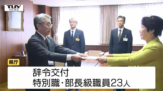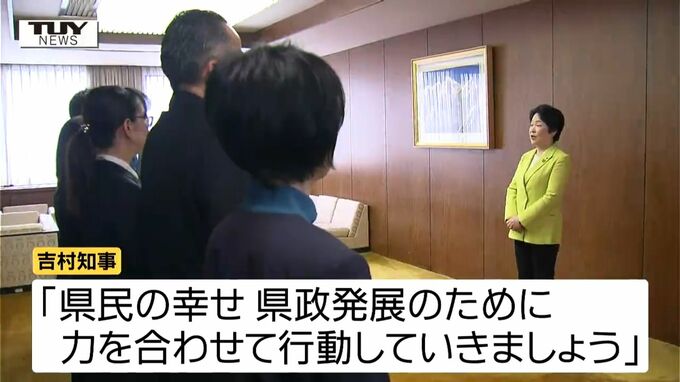 けさ、県庁では、特別職・部長級職員23人に、吉村知事から辞令が発令され、新たな体制が始まりました。