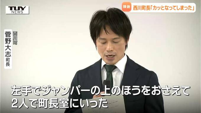 西川町 菅野大志 町長「周りの職員に確認いたしました。左手でジャンパーの上のほうをおさえて2人で町長室にいった」