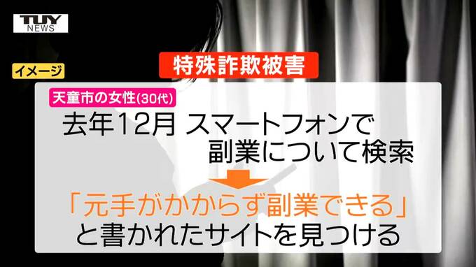 警察によりますと去年12月、天童市の30代女性がスマートフォンで副業について検索していたところ、「元手がかからず副業できる」などと書かれたサイトを見つけたということです。