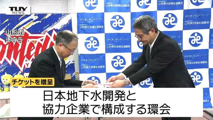 障がいなどで、スポーツ観戦の機会が少ない人たちにモンテディオ山形の試合を楽しんでもらおうと、山形市の企業が、ホームゲームのチケットを贈りました。