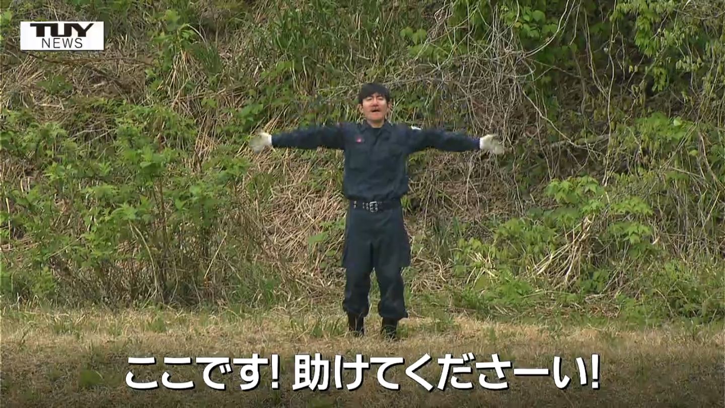 「助けてくださーい!ここです!助けてくださーい!」