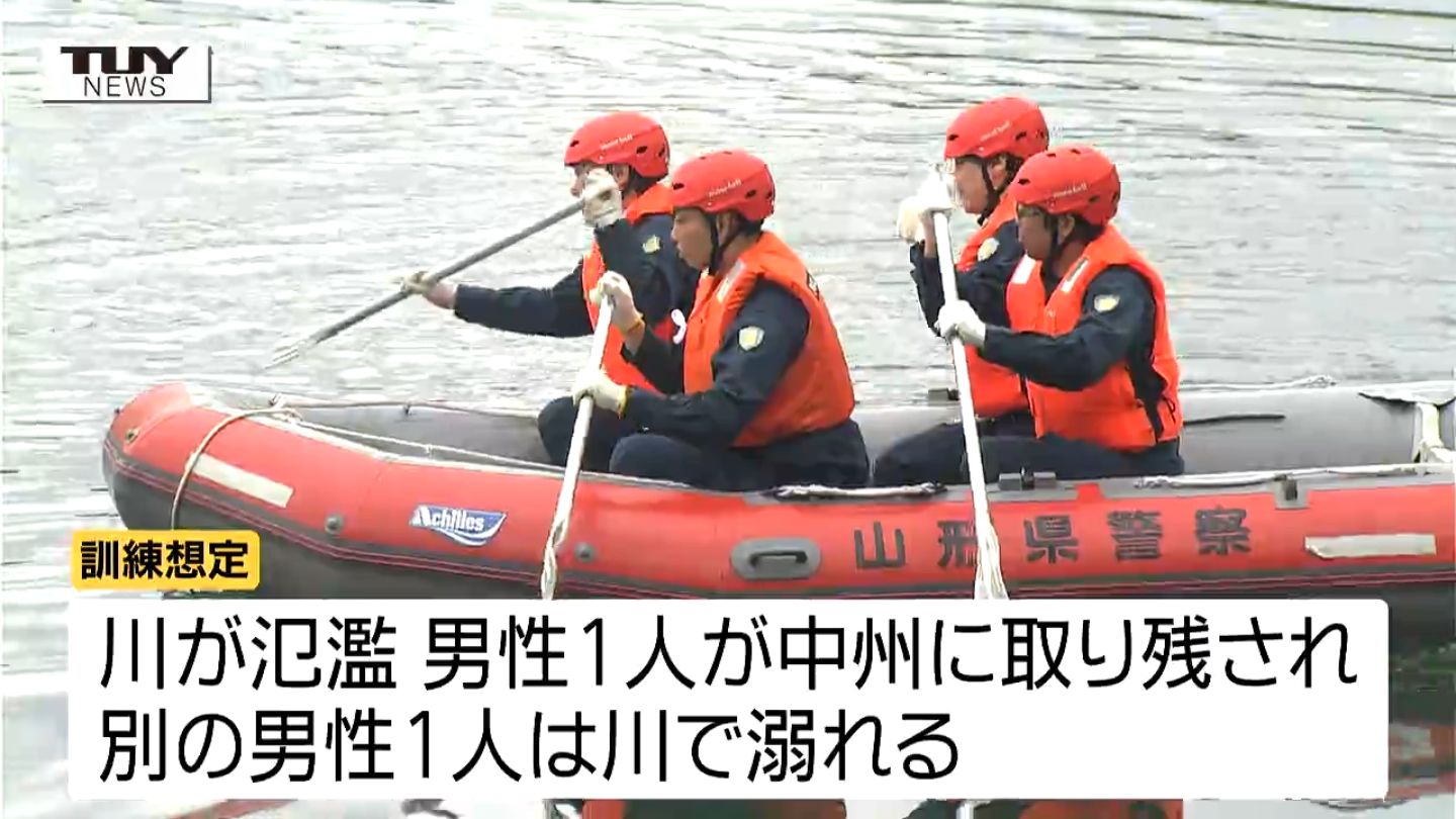 去年7月の記録的な大雨による災害や近年頻発している水害を受け、舟形町できょう、警察が大雨による川の氾濫を想定した救助訓練を行い、装備や安全意識について確認しました。