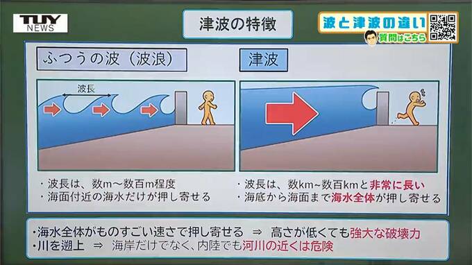 津波は海水全体が持ち上げられ、ものすごいスピードで襲ってくる。その破壊力は、ほんの小さな津波でもとてつもないという。