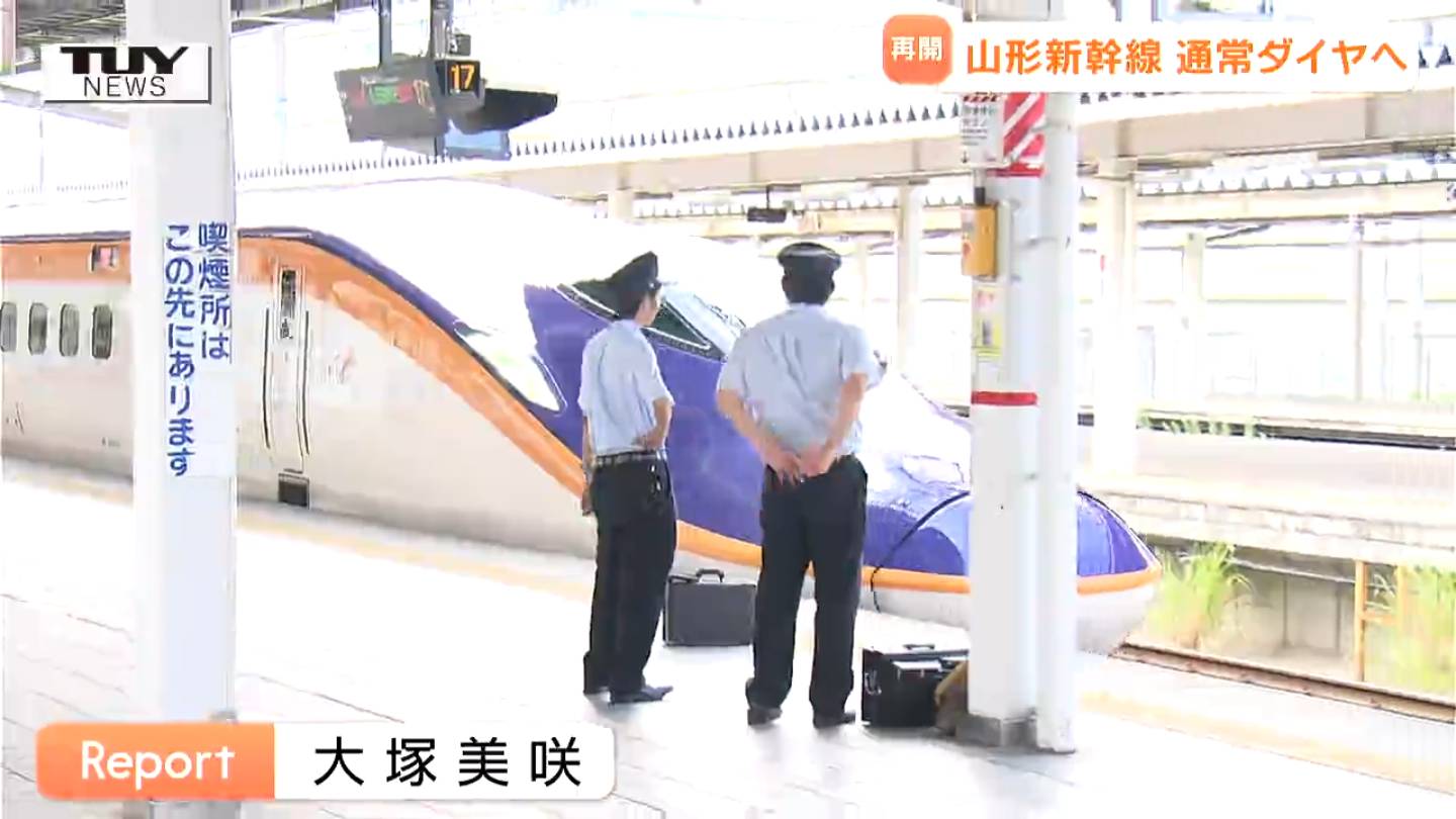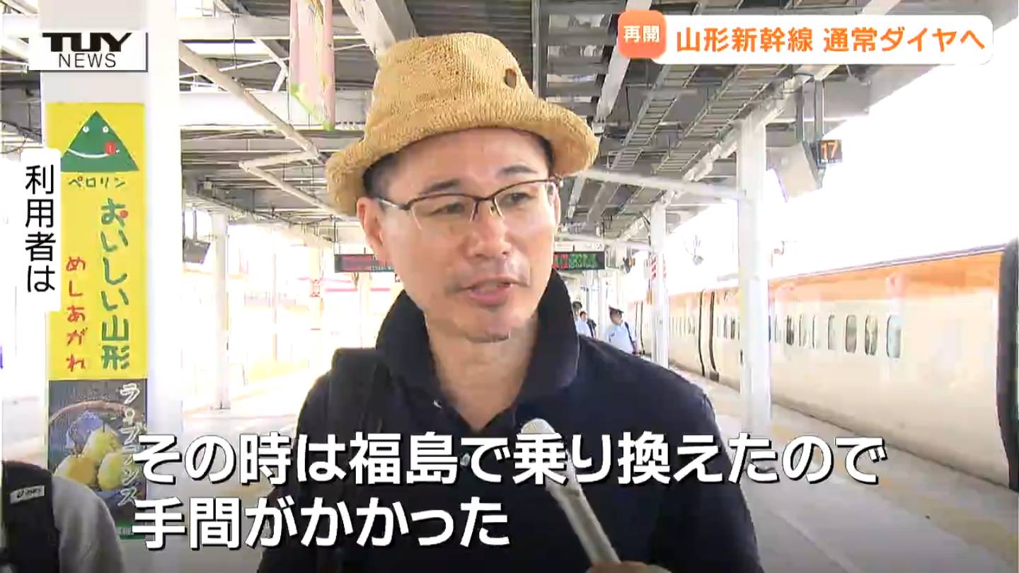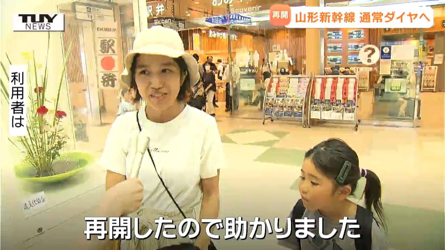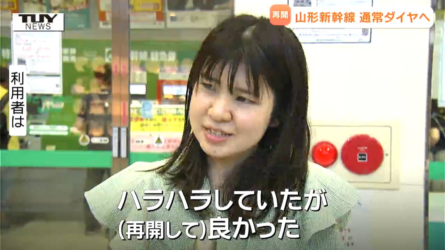山形駅では通常ダイヤの再開に安堵の声が聞かれました。
