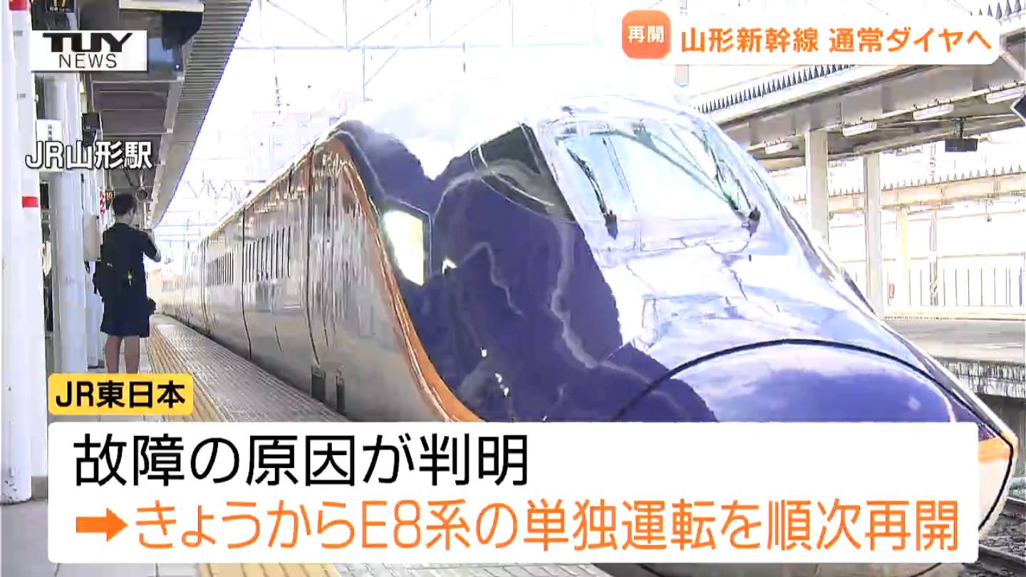 山形新幹線のE8系車両がトラブルで見合わせていた単独運転をきょうから順次再開しています。