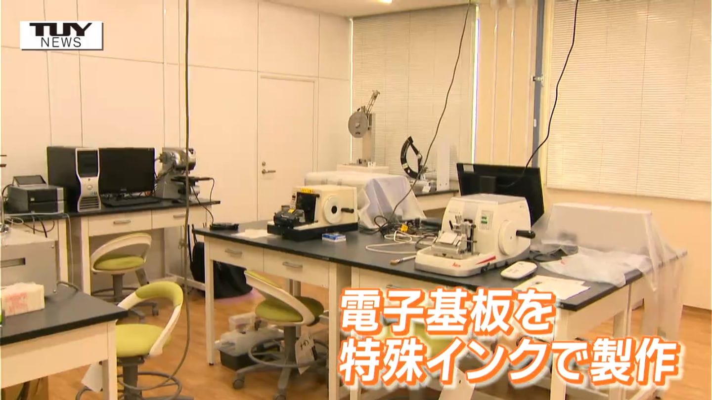 研究施設には共に最新の機器が導入されていて、例えば、電子基盤を特殊なインクを使い製作することでリサイクルしやすく、廃棄も楽にできるようになるということです。