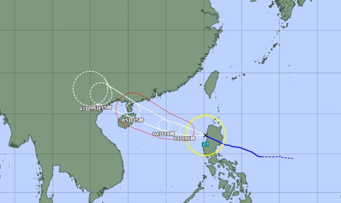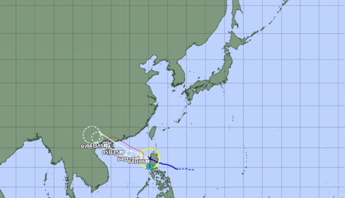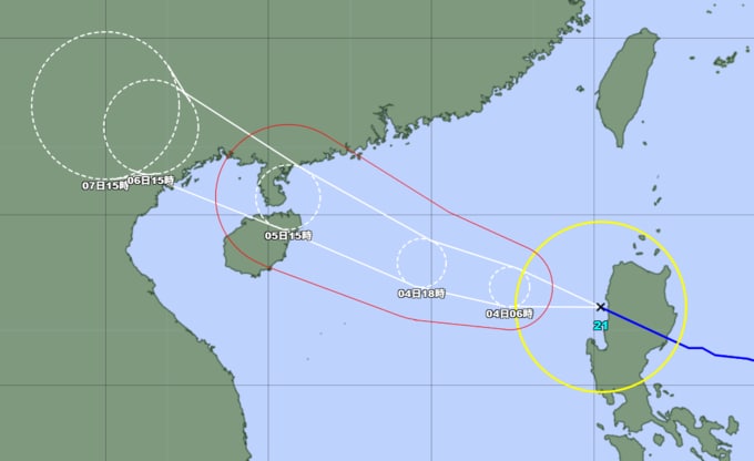 進行方向、速さ 西北西 20 km/h (12 kt)