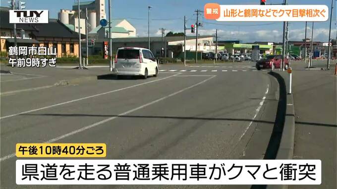 そのおよそ1時間後の午後10時40分ごろ、鶴岡市白山(しらやま)では、県道を走っていた普通乗用車がクマと衝突する事故がありました。運転していた人にケガはありませんでした。