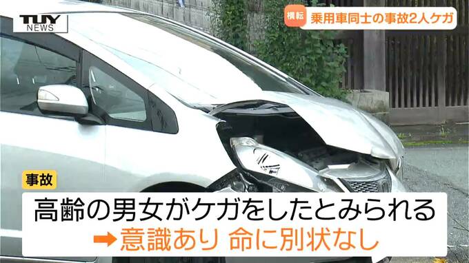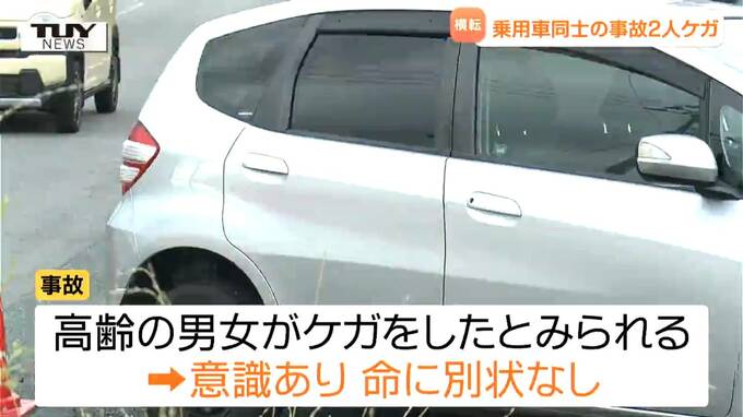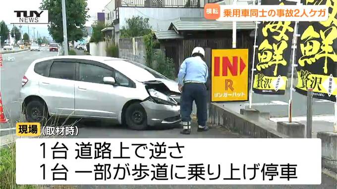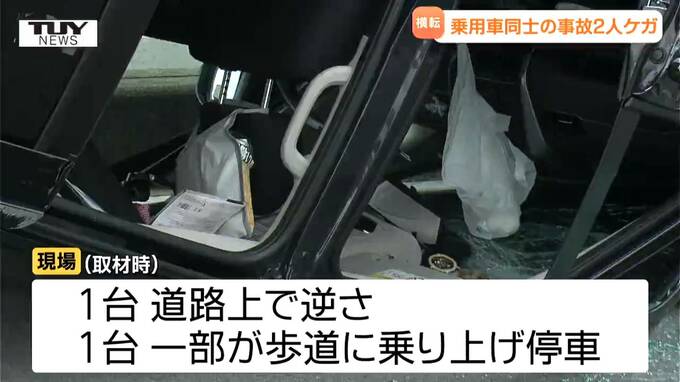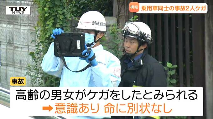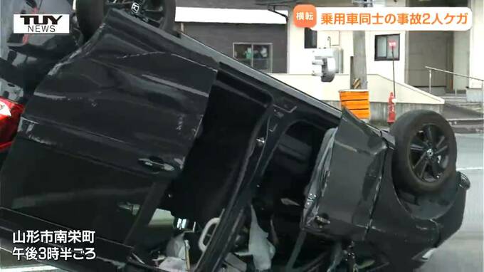 車2台が衝突 1台は横転、もう1台は歩道に乗り上げる 高齢の男女2人がケガ(山形市)