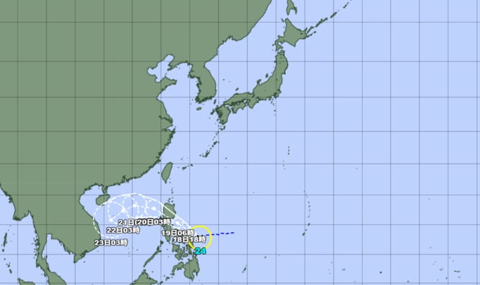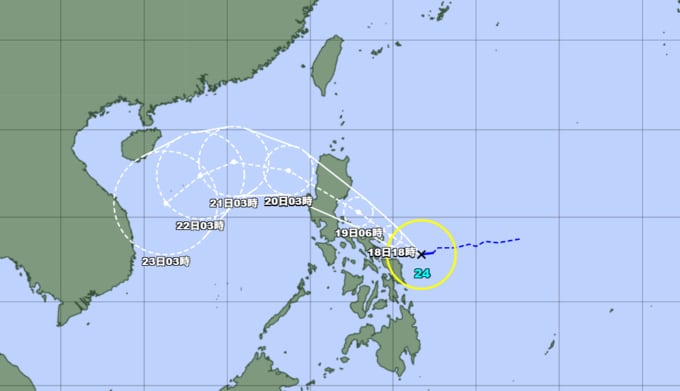 進行方向、速さ 西北西 20 km/h (10 kt)