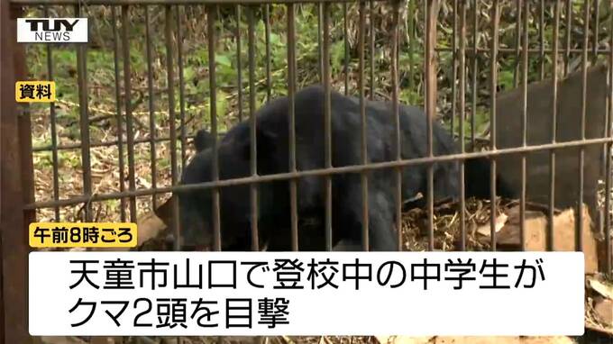 きょう午前8時ごろ、天童市山口で登校中の中学生がクマ2頭を目撃したと学校から警察に連絡がありました。現場は山口小学校から国道48号を西に向かった新原崎橋(しんばらざきばし)付近です。周辺には学校や民家が密集するエリアで、市と警察が警戒を続けています。