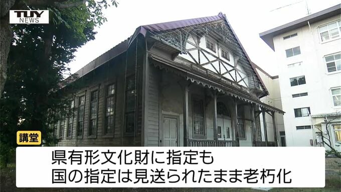 隣接する本館は国の重要文化財に指定されていてますが、講堂は県の有形文化財ではあるものの、国の文化財としての指定は見送られたまま、老朽化が進んでいます。