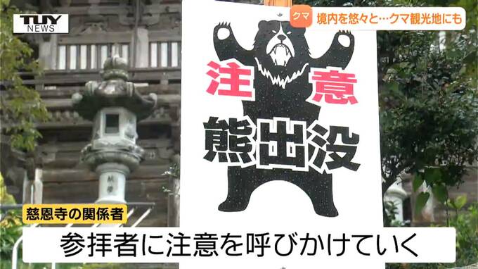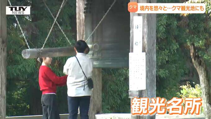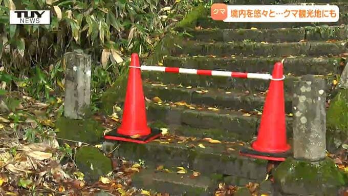 山口颯太 記者「先ほどの防犯カメラの映像に映っていたクマが走り去ったとみられる石段です。慈恩寺ではクマの被害にあわないようポールを設置して参拝者が通行できないようにする対策をとっています」