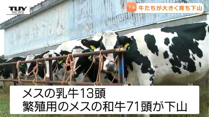 きょうは、メスの乳牛13頭と繁殖用のメスの和牛71頭が下山しました。
