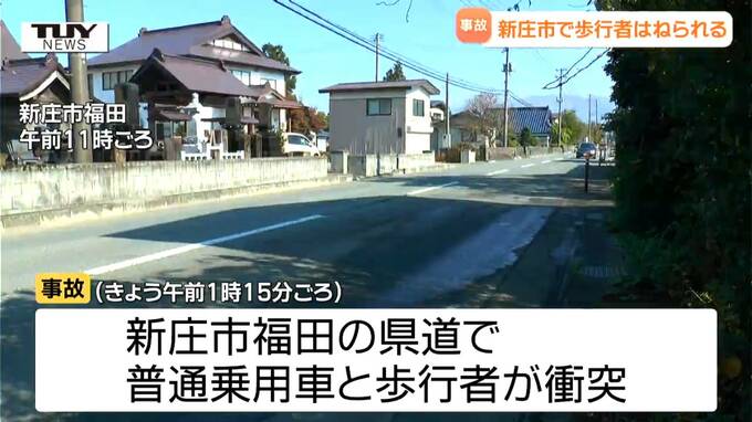 この事故は、きょう午前1時15分ごろ、新庄市福田の県道で普通乗用車と、道路上にいた歩行者が衝突したものです。