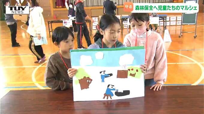 森林の保全活動を行っている山形県東根市の高崎小学校で、児童たちが考えたマルシェが開かれました。森が身近にある児童たちにも、クマ被害は関心ごとのようです。