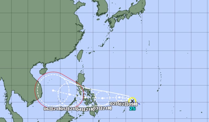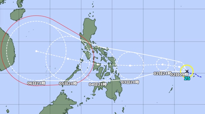 台風は1時間におよそ20キロの速さで西北西へ進んでいます。