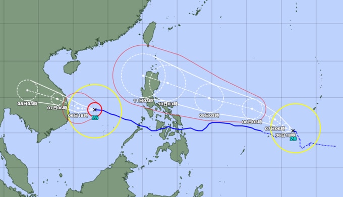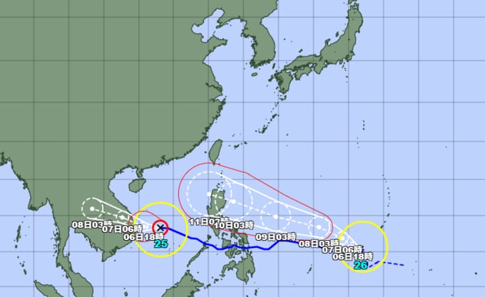 台風は1時間におよそ20キロの速さで北北西へ進んでいます。