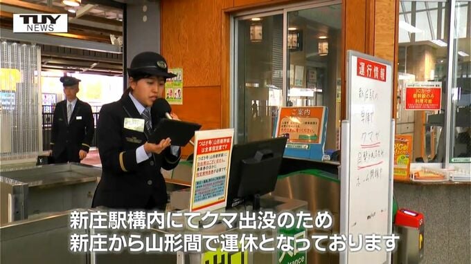 駅員「新庄駅構内にてクマの出没のため、新庄から山形間で運休となっております」