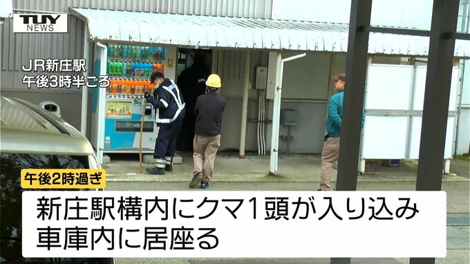 8日午後2時過ぎ、JR新庄駅構内にクマ1頭が入り込み、車庫内に居座りました。