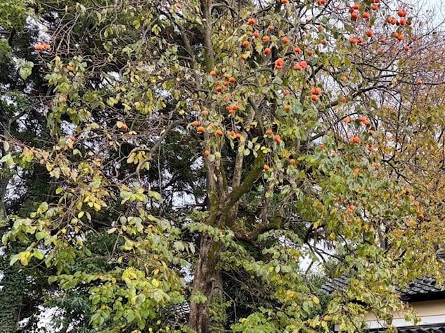 クマは八坂神社の裏の民家敷地にあるカキの木に登っていたという。