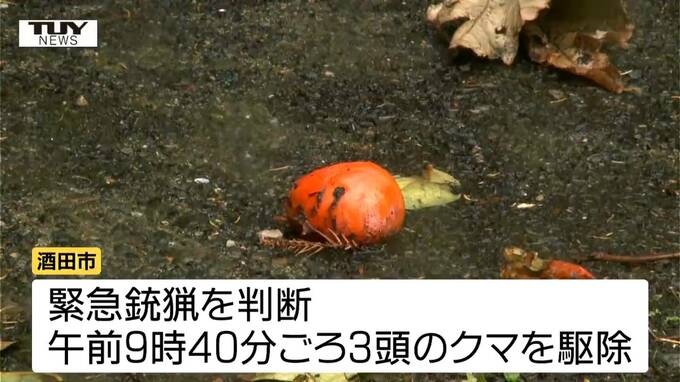 午前9時半すぎに緊急銃猟が実施されクマは駆除された。当初クマの目撃情報によると、現れたのは2頭と見られていたが、実は3頭いたということが緊急銃猟のタイミングでわかり、3頭とも駆除された。