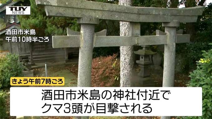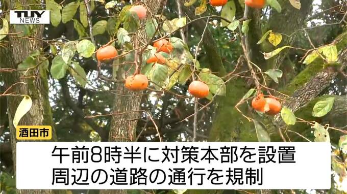 午前7時ごろにクマが「カキの木に登っている」との通報を受け、市と警察が駆けつけ神社周辺を交通規制したほか、8時半ごろに市が緊急対策本部を立ち上げて対応を協議していた。