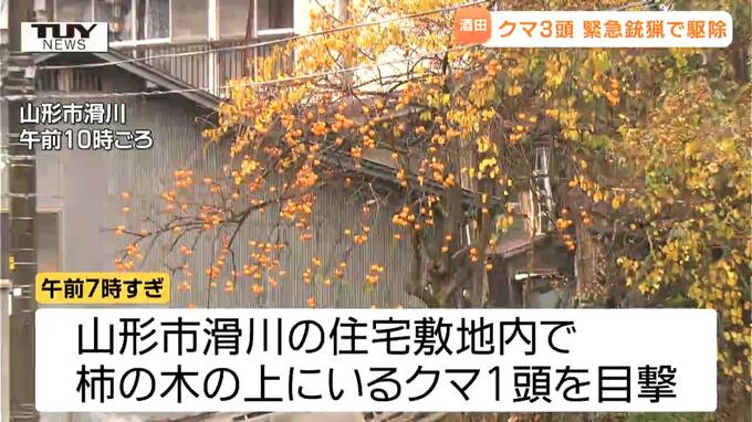 また、山形市ではきょう午前7時すぎ山形市滑川の住宅敷地内で柿の木の上にいるクマ1頭が目撃されました。
