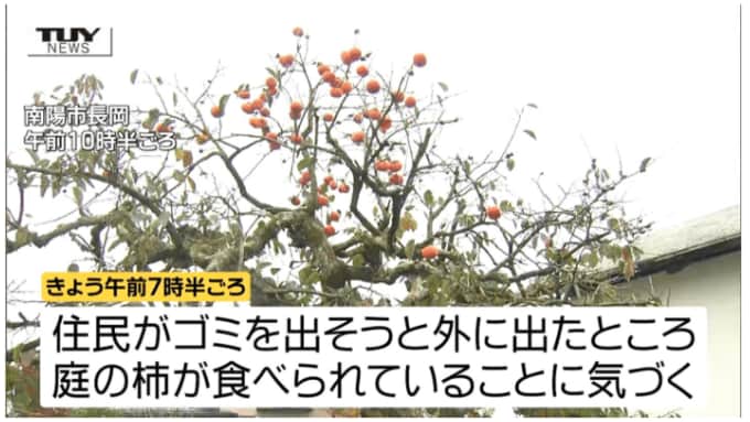 南陽市の住宅の庭で、6日にクマのものと見られる食害とフンが見つかり、警察と市が警戒を続けています。6日の午前7時半ごろ、この家に住む住民がゴミを出そうと外に出たところ、庭の柿が食べられていることに気がついたということです。