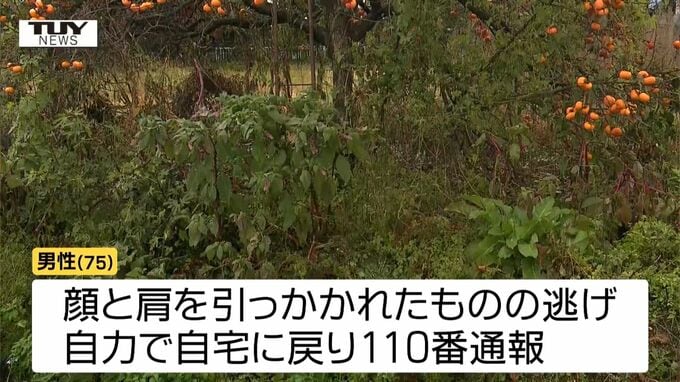 男性は顔と肩を引っかかれたものの逃げ、自力で自宅に戻り110番通報したということです。