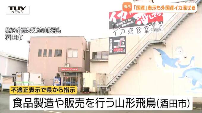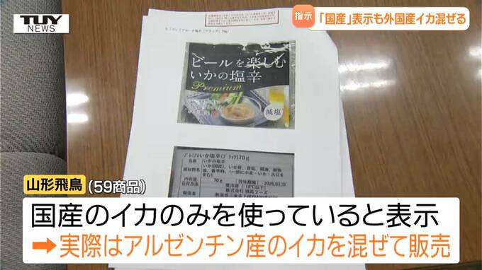 山形県酒田市の食品製造・販売会社が、国産のイカのみを使用していると表示しながらアルゼンチン産のイカを混ぜて商品を作り販売していたとして、県が表示の是正などを指示しました。