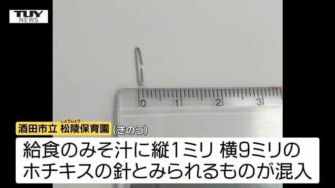 酒田市の保育園できのう(11日)、給食のみそ汁からホチキスの針とみられる異物が混入しているのが見つかりました。
