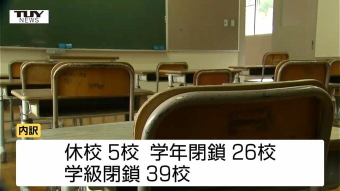 内訳は休校が5校、学年閉鎖が26校、学級閉鎖が39校となっています。