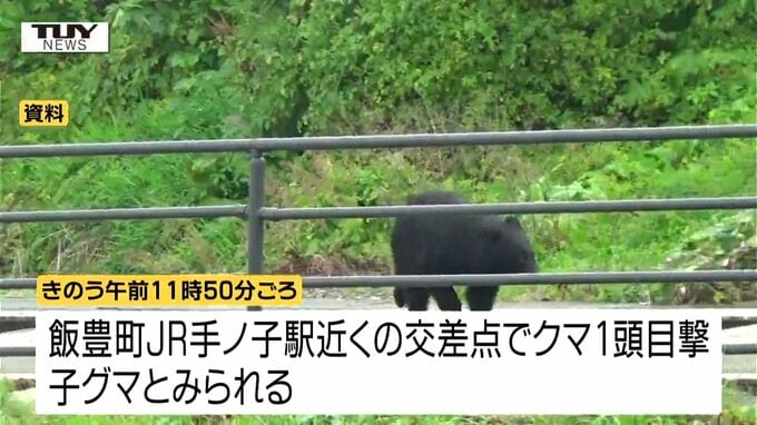 町や警察によりますと、きのう午前11時50分ごろ、飯豊町手ノ子のJR手ノ子駅近くの交差点でクマ1頭が目撃されました。