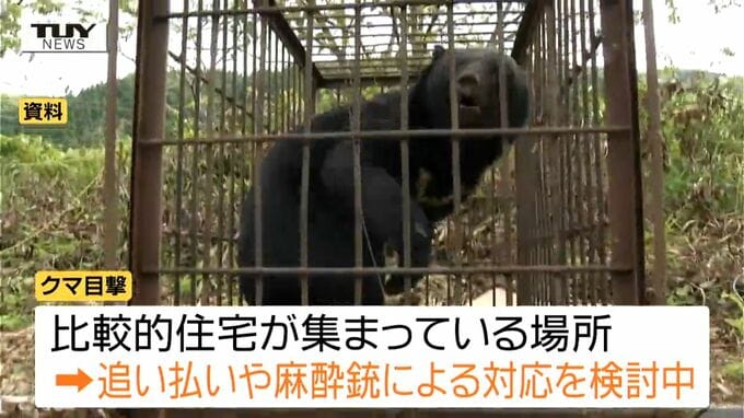 クマが目撃されたのは比較的住宅が集まっている場所で町などが追い払いや麻酔銃による対応が可能か検討しているということです。