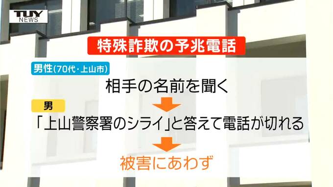 男性が相手の名前を聞いたところ「上山警察署のシライ」と答えて電話が切れ、被害にあわなかったということです。