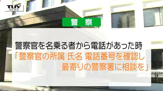 警察では警察官を名乗る者から電話があった時は、警察官の所属や氏名、電話番号を確認し、最寄りの警察署に相談するよう呼び掛けています。