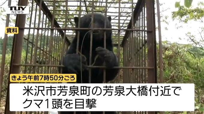 きょう午前7時50分ごろ米沢市芳泉町の芳泉大橋付近でクマ1頭が目撃されました。クマは柿の木に登っていたということです。その後、クマの行方は分かっていません。