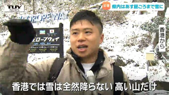 大阪から「温泉旅行。全国的に寒いと言っていたから雪かなと思ってきたが、本当に雪なんだなと思って」