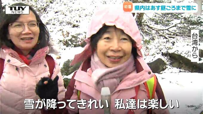 台湾から「雪が降ってきれい。私達はたのしい。細雪はロマンティック」
