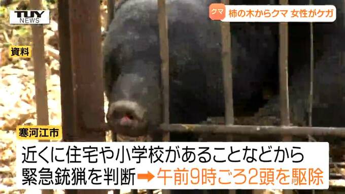 近くには住宅や小学校があることなどから市は緊急銃猟を判断し、午前9時頃、2頭は駆除されました。